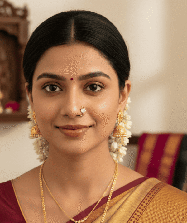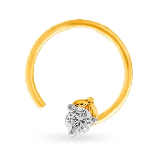 Pair your modern wear with this attractive and spectacular diamond nose pin crafted in yellow gold. Glam up your modern wear look with this alluring diamond nose pin.