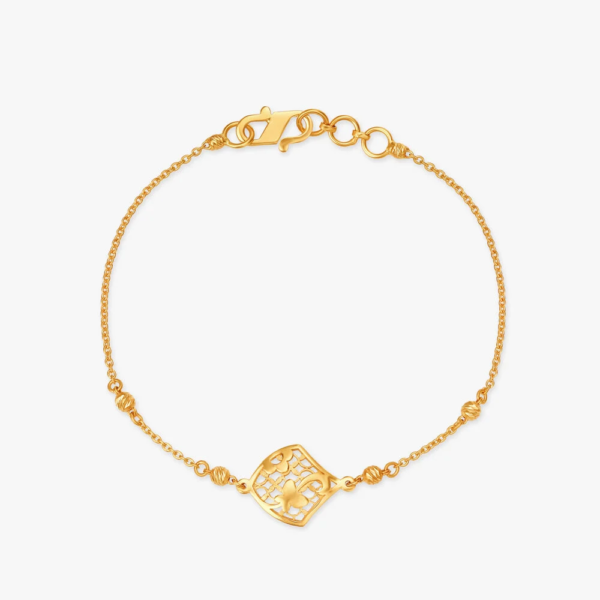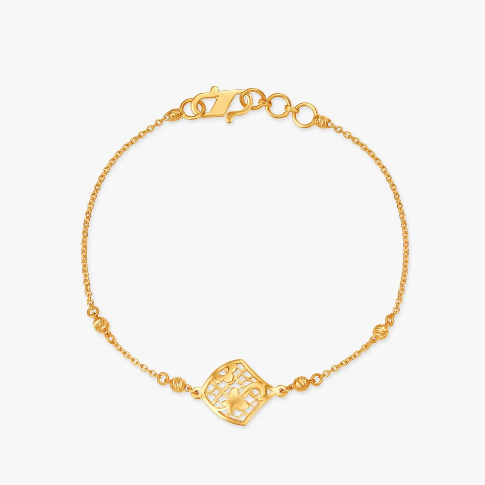 Contemporary and bold, this gold bracelet defines opulence with a whimsical flair, revealing your distinct style and individuality.