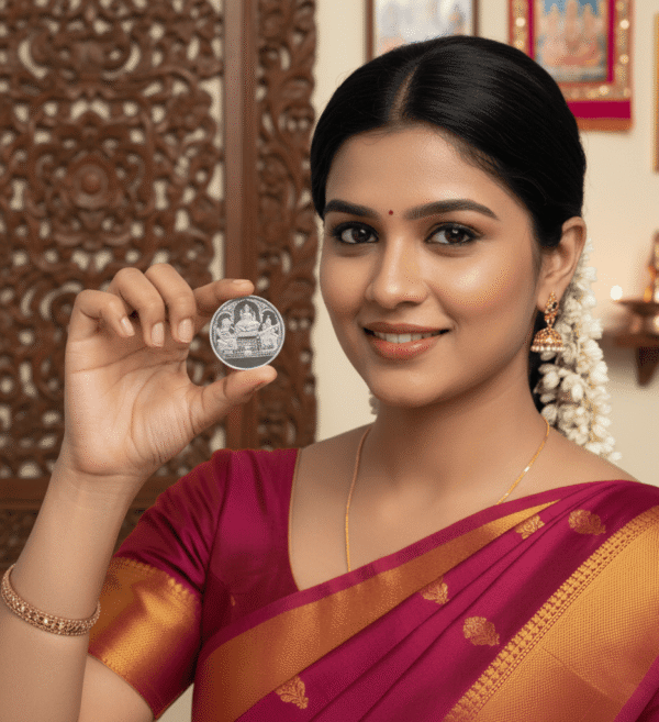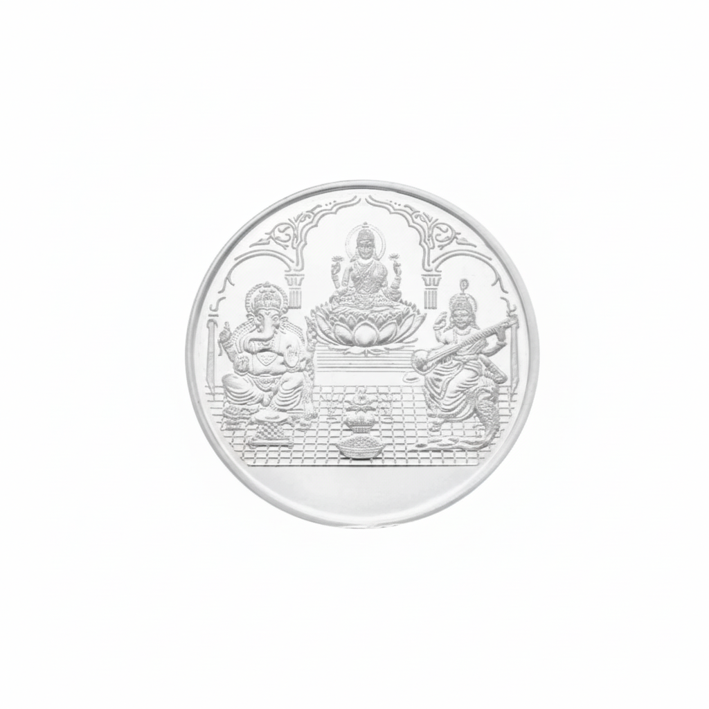 This Silver Ganesh Lakshmi Saraswati Coin 10g is perfect for worshipping and as a keepsake.