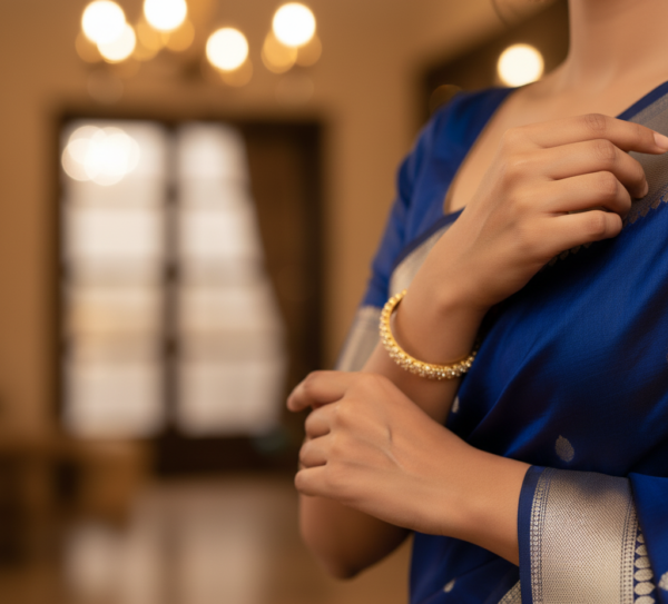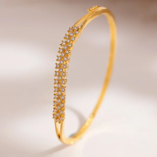 Sparkling Essential Golden Prism Bracelet – an exquisite piece that embodies grace, elegance, and modern sophistication. Crafted from premium brass and luxuriously plated in radiant yellow gold, this bracelet is a statement of timeless beauty. Its intricate prism-inspired design is accentuated with delicate floral motifs, adding a touch of refinement that seamlessly blends traditional charm with contemporary aesthetics. Perfect for parties, office wear, everyday elegance, and even vacation chic, this bracelet complements a variety of styles, from ethnic ensembles to Western fashion statements