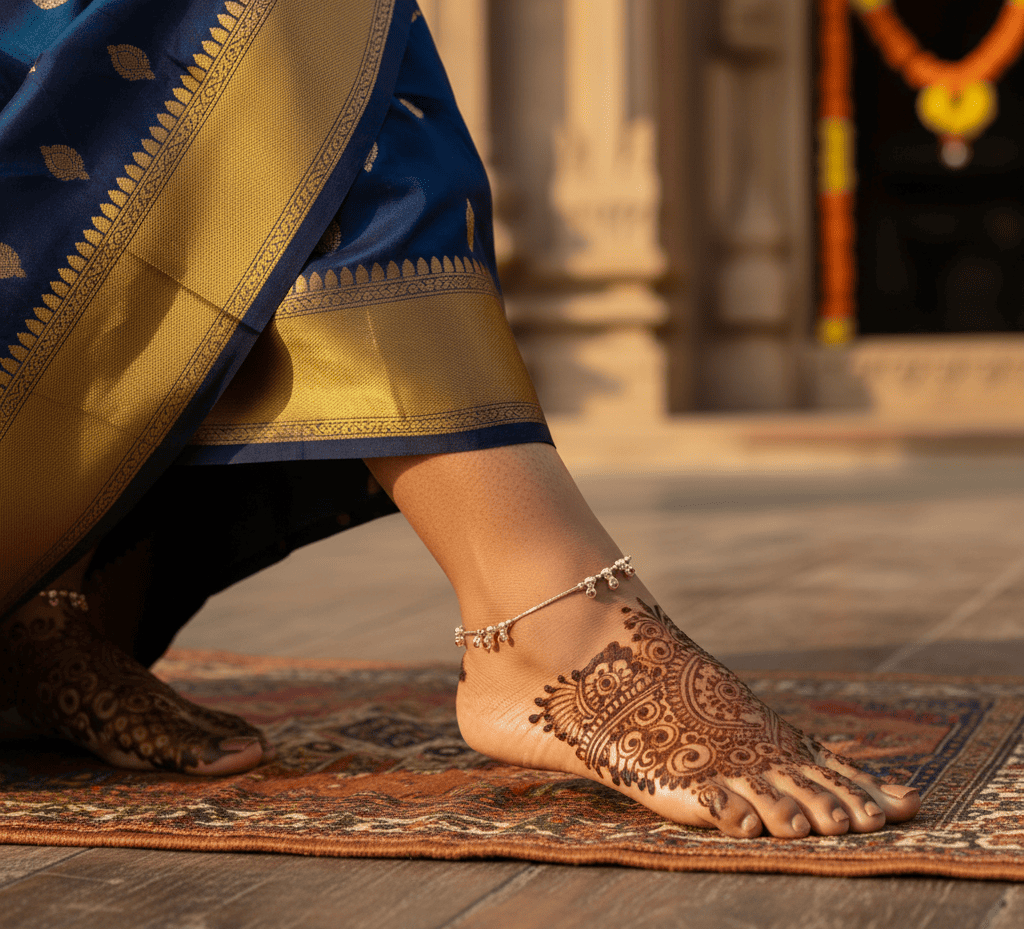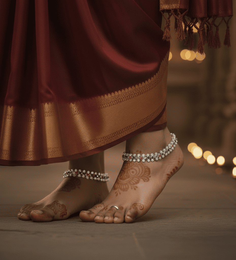 Silver anklets showcase elegant craftsmanship and vintage appeal. Designed to complement traditional and contemporary outfits, they add a graceful charm to your look—perfect for special occasions or everyday ethnic style.